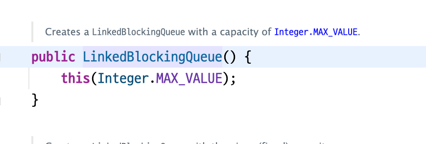 Thread Pool의 Queue size가 Integer.MAX_VALUE로 되어 있어 설정 필요하다.